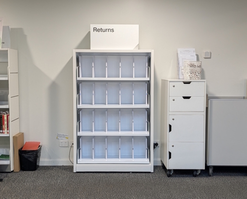 Over a focused two-day program, legacy Bibliotheca equipment – which had reached end of life – was fully decommissioned and replaced with a complete Arcus ecosystem. The upgrade included new self-service kiosks, security gates, live return shelves, staff workstations, smart & secure return chutes, Arcus Self-Leveling Bins, and handheld devices – delivering a comprehensive reset of library operations.