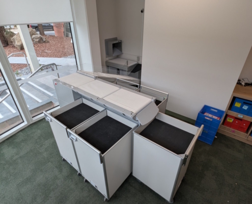 The system was planned in detail with the project architects, builders, and the library team to align precisely with the purpose-built sorting room. Clearances, workflows, service access, and potential future growth were considered from day one.